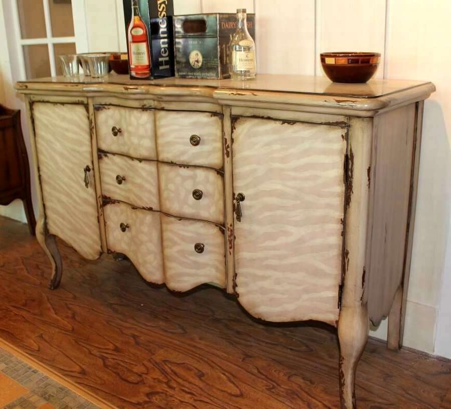 4. При реставрации придать буфету эффект старины. Иначе в чем смысл иметь в доме старинный буфет, если он будет выглядеть как новенький? Добиться винтажного вида в духе стиля прованс можно с помощью искусственных потертостей, которые создаются своими руками при помощи наждачки, кракелюрного лака или декупажа.