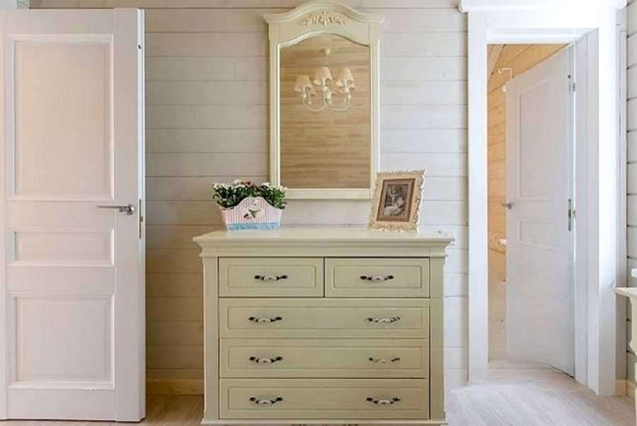Стиль прованс, помимо прочего, характеризуется стремлением к удобству и комфорту. Винтажное оформление комода гармонирует с остальным декором.