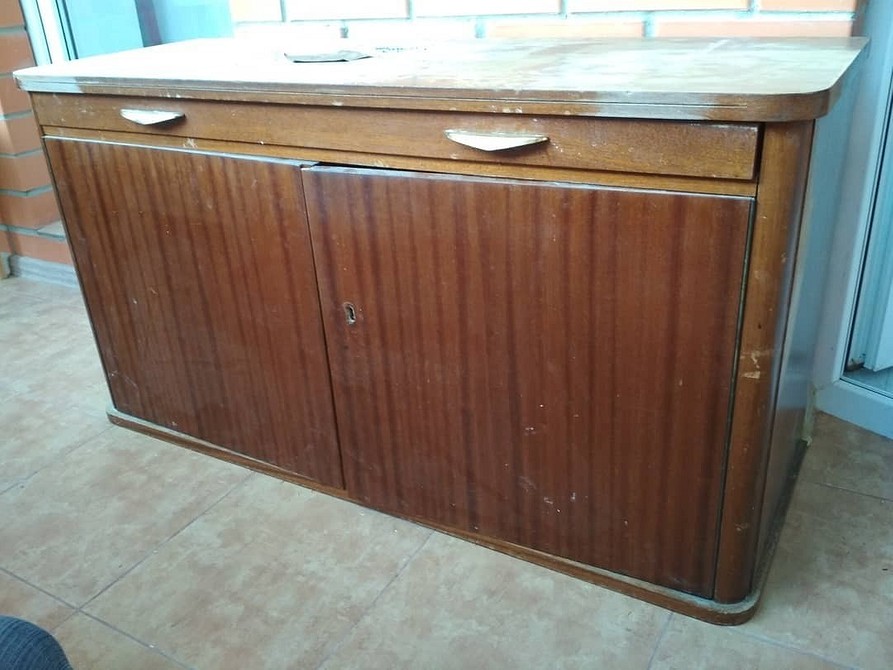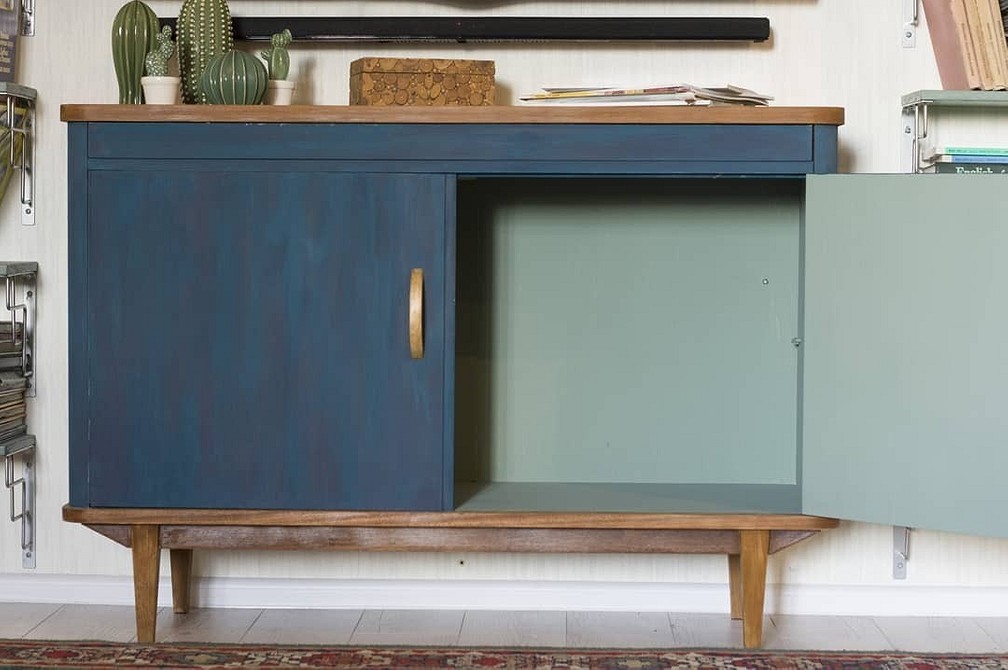 Эта задача сложнее, но таким образом старая тумбочка стала элегантным украшением в эстетике модерна середины века