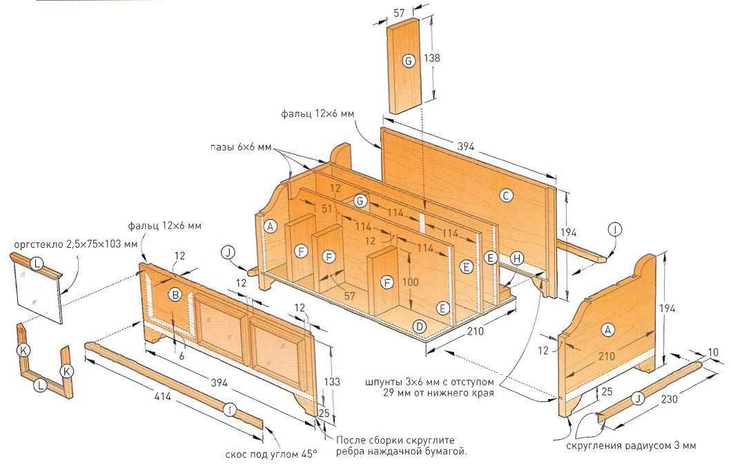 Опиливание досок выполняется лобзиком. Вручную не напилить ровно, особенно при отсутствии опыта. После заготовки всех необходимых элементов и фурнитуры можно приступить к сборке. Сначала собирается каркас изделия. Между собой собираются при помощи саморезов. Теперь прикрутить балки