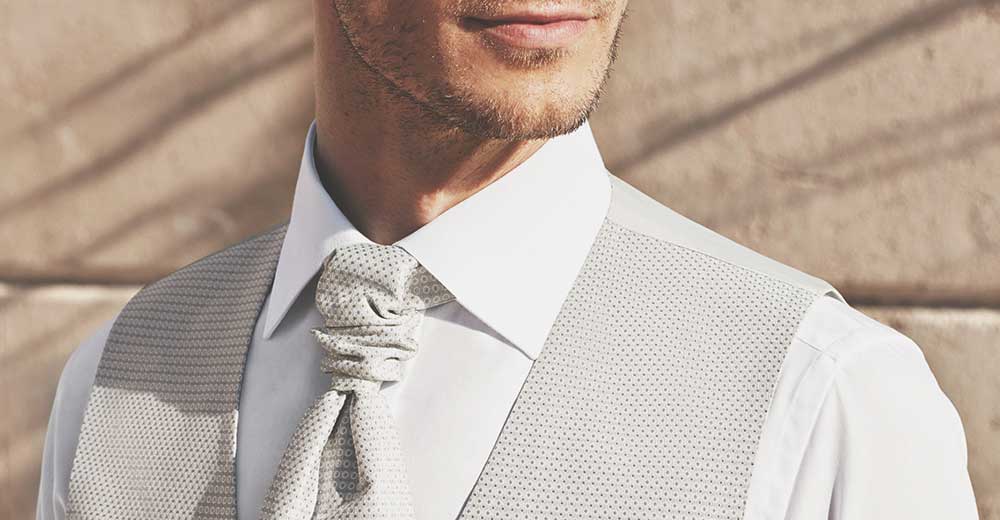 Галстук-пластрон является аксессуаром для особых случаев. Его носят с костюмом-визиткой и жилетом. Для торжественных мероприятий необходимо идеально сочетать все элементы образа.