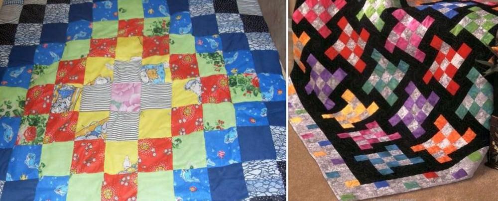 Из разноцветных полосок изготавливают самые разные узоры. Для этого используют отдельные блоки. Работа кропотливая, нужно четко измерять и тщательно утюжить каждый шов. Часто блоки делают по специальным схемам.