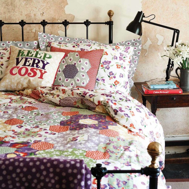 . Для начинающих предпочтительны одеяла с крупным рисунком или узором (примеры посмотрите на фото). Так как вам предстоит сшить одеяло из квадратов, узор может быть достаточно простым, геометрическим (змейка, мозаика). - Выбор ткани