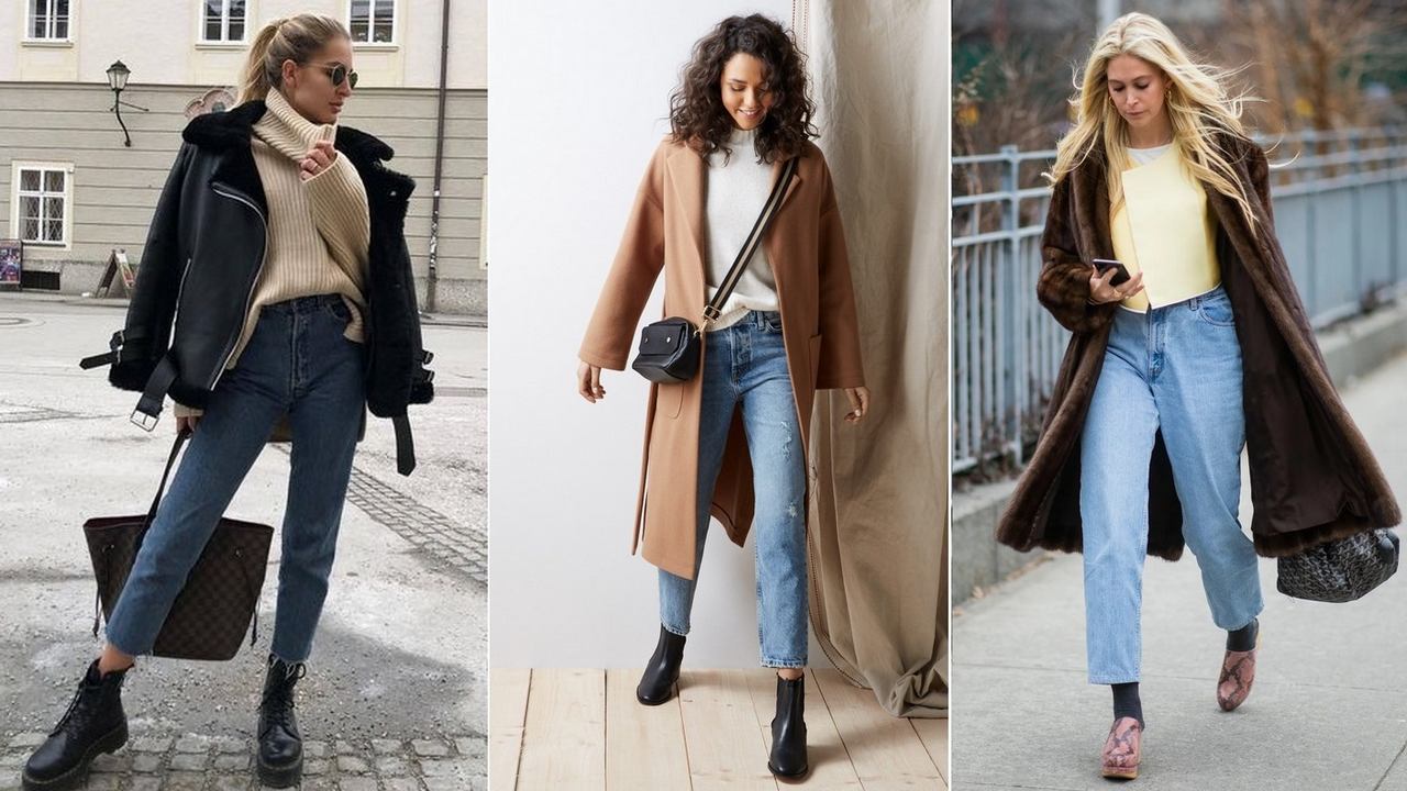 Для верхней одежды существует больше возможностей. «Мом» хорошо смотрятся как с куртками и парками, так и с удлиненными пальто и плащами.