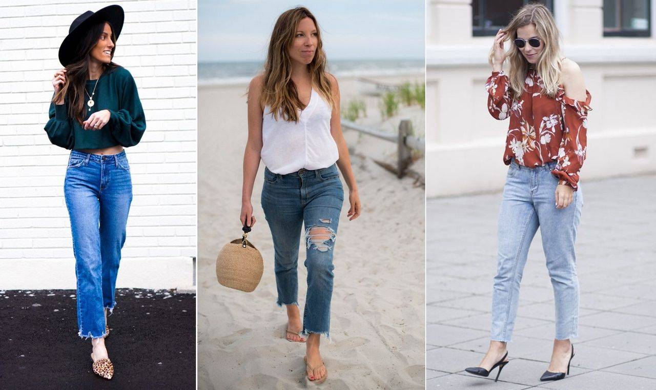 Светло-голубые, серые и темно-синие бойфренды надевают под джинсовую или кожаную куртку-косуху. Такие брюки носят с кроссовками или лодочками. Зауженные книзу джинсы можно надевать под жакет и туфли на высоком каблуке.