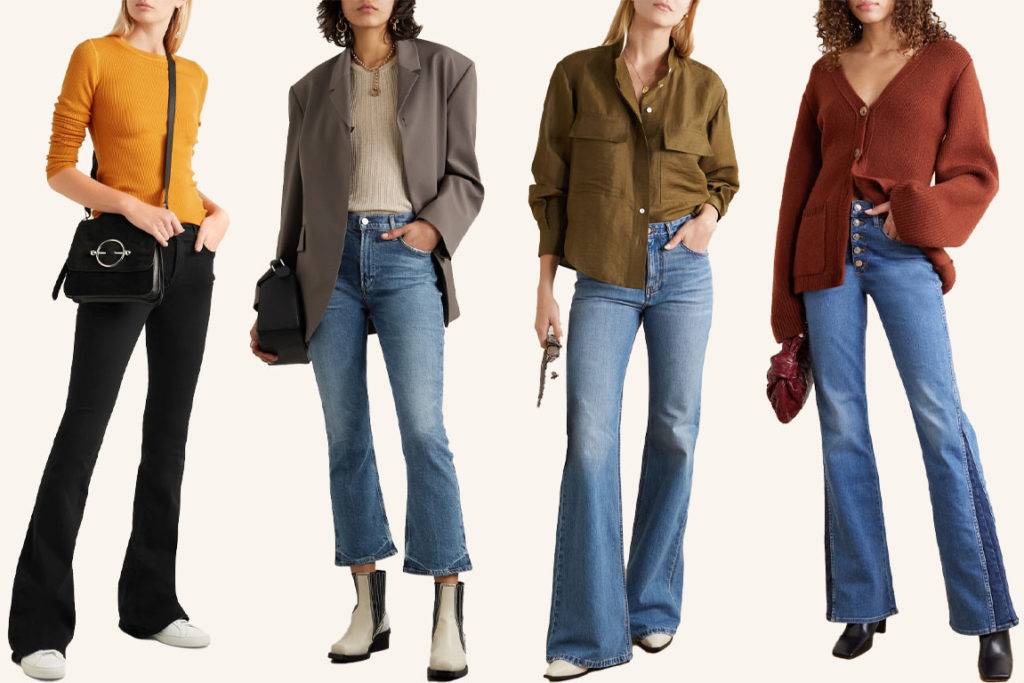 Такие джинсы плотно сидят по линии бедра, а от колена расширяются до края штанины. Клёш визуально удлиняет ноги. Особенно, если носить с высоким каблуком и штаниной до пола. С плоским ходом тоже смотрится хорошо