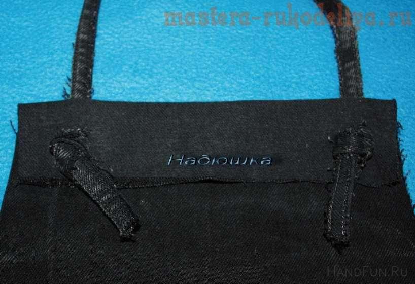 - Далее делаются завязки. Поскольку это рабочий фартук, то они должны быть очень прочными. Их можно приобрести в магазинах или найти дома. Это как очень плотная подгибка для брюк. Делаются мерки, отрезаются нужные кусочки завязок и пришиваются. Фартук готов.