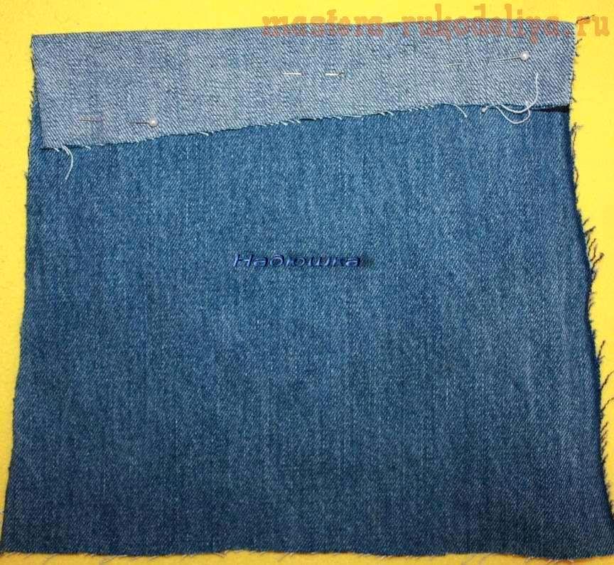 Первое что потребуется распороть и разгладить старые джинсы. Далее прикладываем выкройку (больше или меньше можно регулировать в зависимости от желаемого размера).