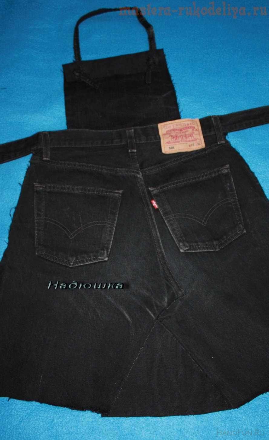 Итак, все очень просто. Берем джинсы, желательно ваши, вашего размера, чтобы не возится с поясом и застежкой. Вырезаем фартук так, как показано на фото
