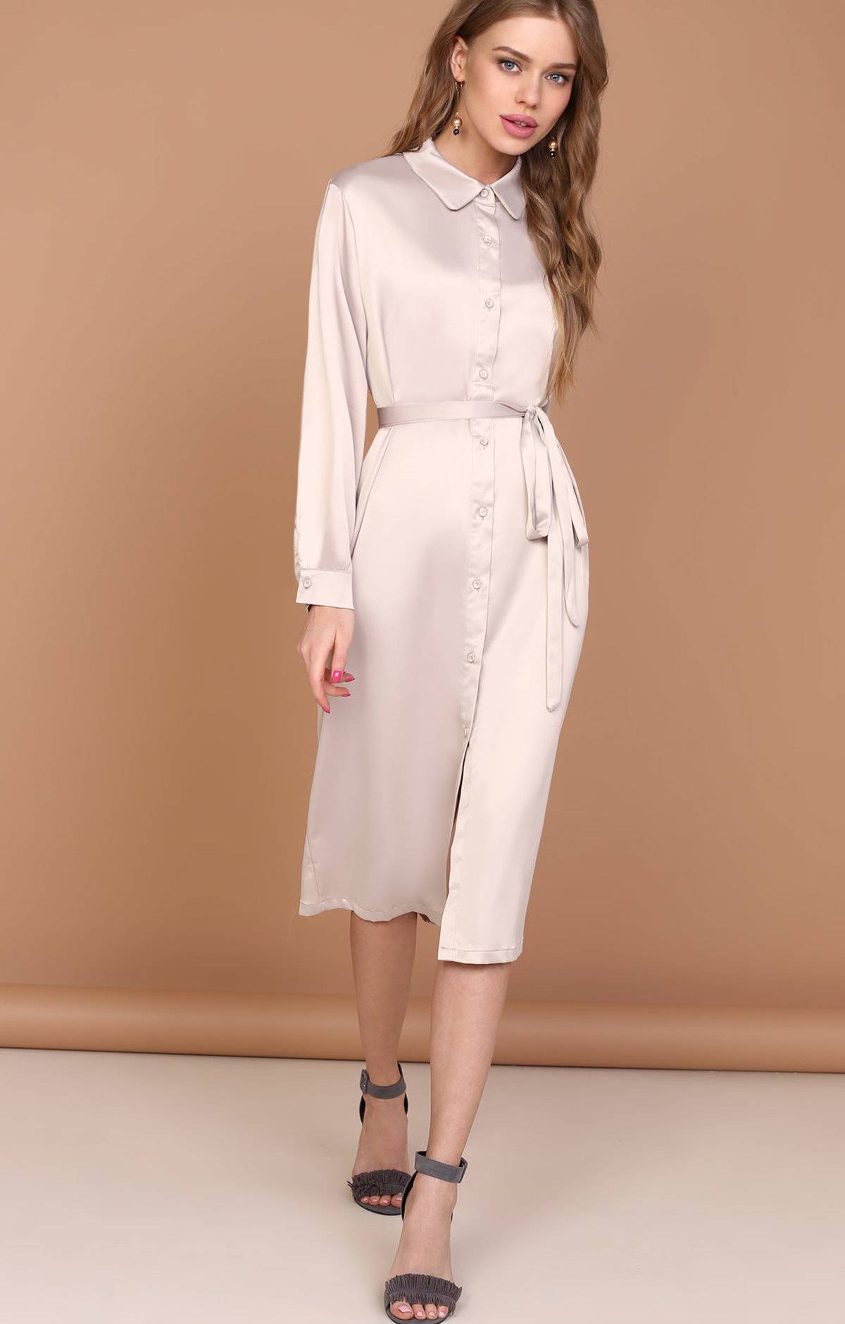 - Рубашка. Интересное платье из шелка характеризуется строгостью кроя и завершенностью линий, что удивительным образом гармонирует с мягкостью и сиянием материала.