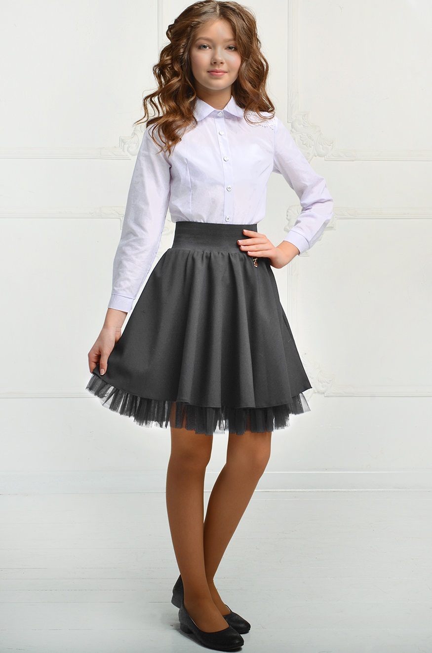 Юбка в сочетании с верно подобранной блузкой или кофточкой может стать привычным повседневным образом для школьницы любой ступени. И если для младших девочек более уместны расклешенные модели чуть выше колена, то ученицы старших классов предпочитают прямые классические модели, создающие деловой образ взрослеющей леди.