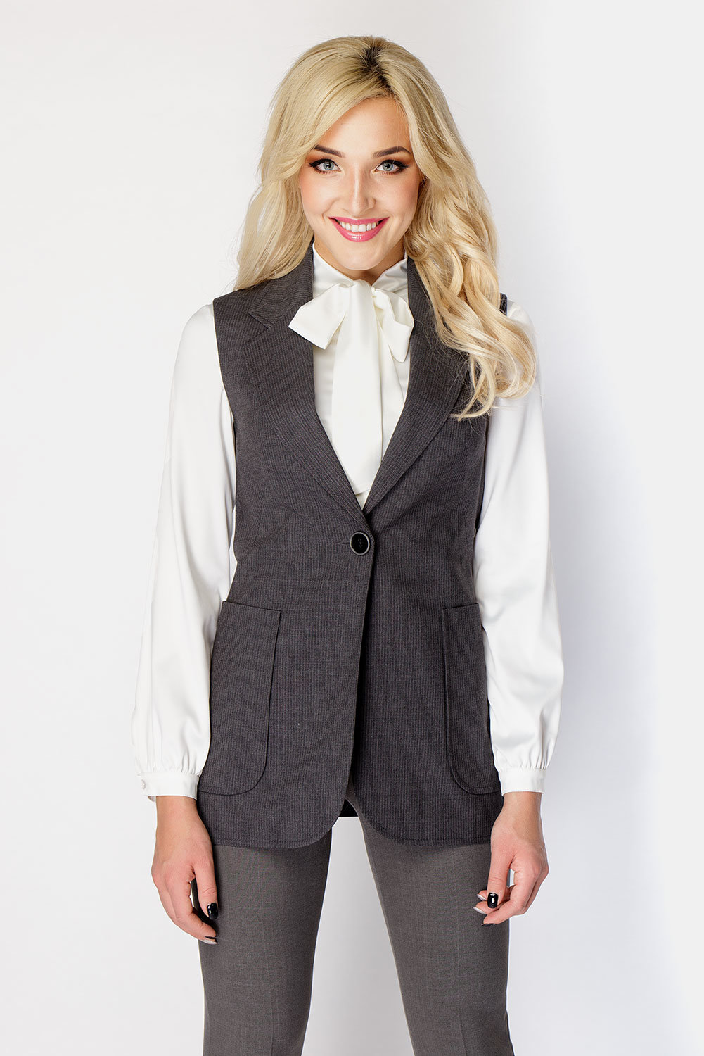 Одевшись так, вы вызовете восхищённые взгляды коллег и деловых партнёров, продемонстрируете безупречное чувство стиля и респектабельность. Если вы считаете, что такому комплекту недостаёт женственности, то замените рубашку на полупрозрачную нежную блузку. Если дресс-код на вашей работе очень строгий и не допускает отклонений даже в жару, то классический удлинённый жилет без рукавов поможет вам пережить эти требования без потерь, чувствовать себя комфортно и не вызывать гнев начальства. Такую вещь можно без труда вписать в городской стиль.