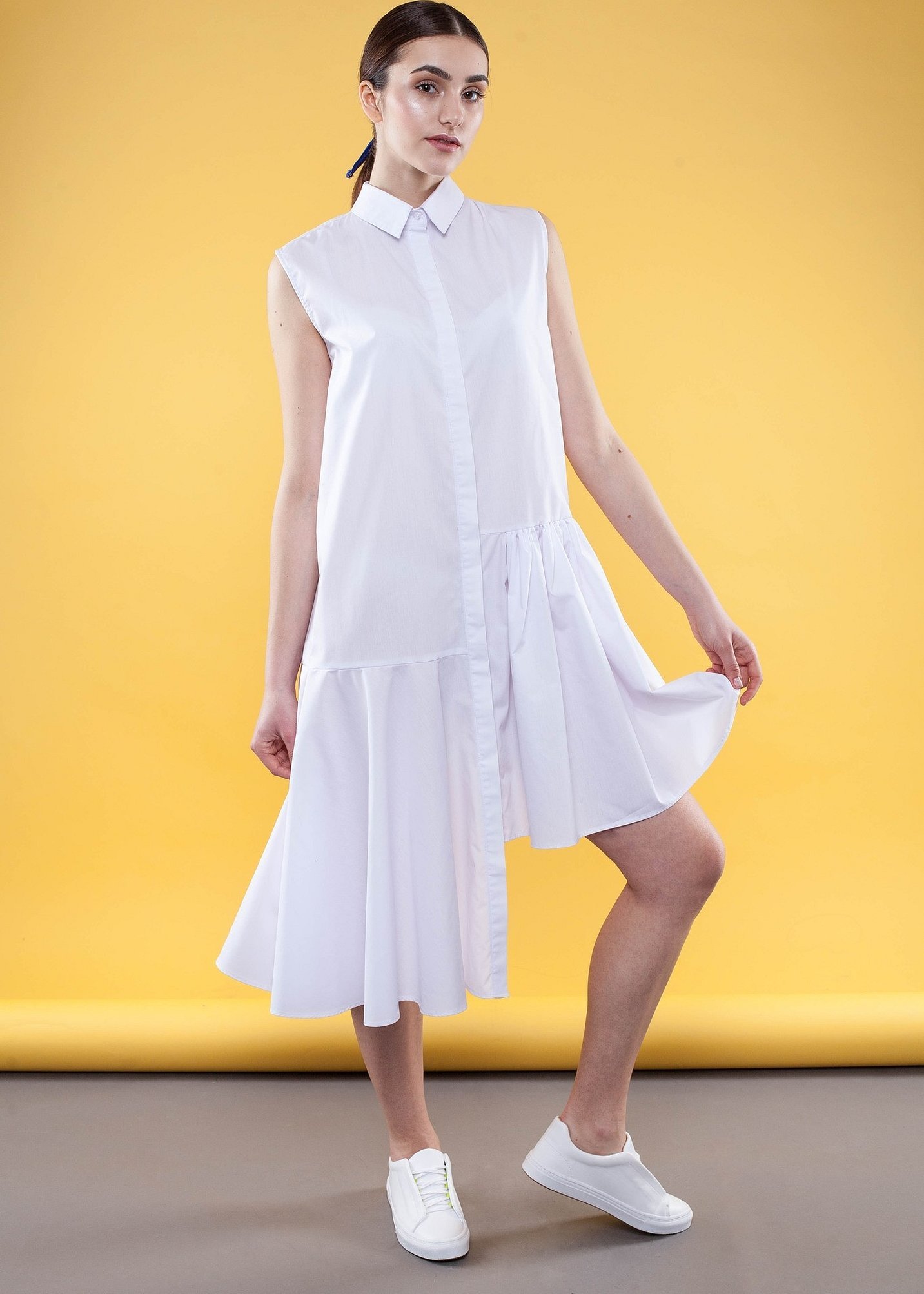 Самый подходящий вариант для создания свежего лёгкого образа в летние дни, дополнив его яркими аксессуарами. Шифоновое или шёлковое белое платье-рубашка смотрится романтично и обворожительно.