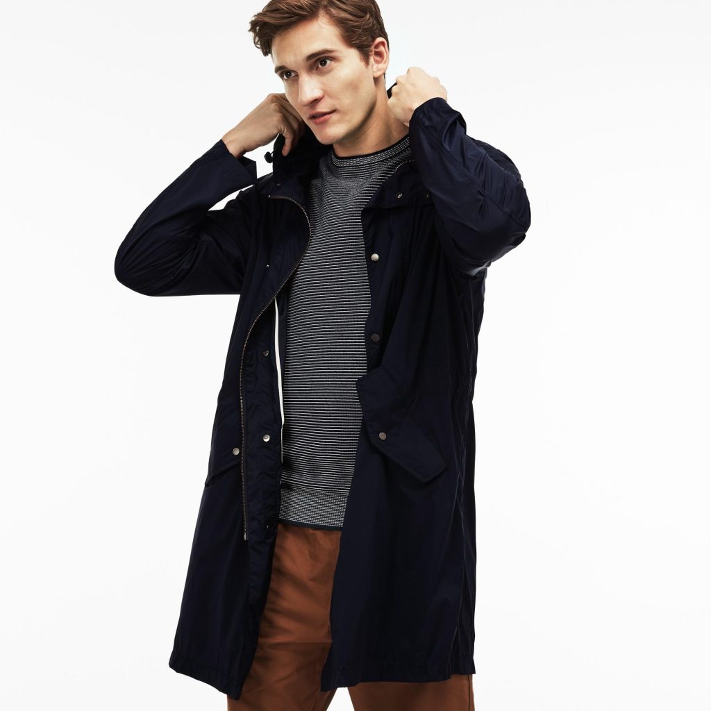 Длинное пальто из водоустойчивой или влагостойкой ткани.