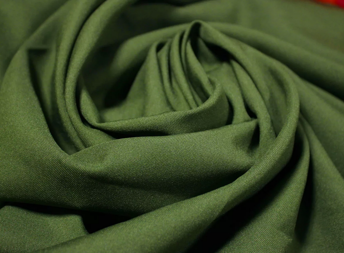 Полиэстеровый габардин дешевый, часто его используют начинающие швеи, чтобы научиться мастерить одежду. С таким материалом легко работать, его не жалко испортить, если что-то пошло не так. Шьют из полиэстера спецодежду, юбки и брюки. Ткань гладкоокрашенная, рубчик рассмотреть можно, если очень приблизиться к материалу.
