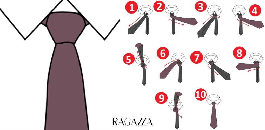 Малый узел на галстуке и схема его завязывания