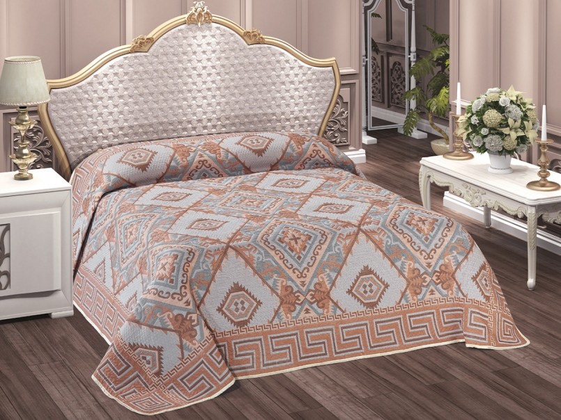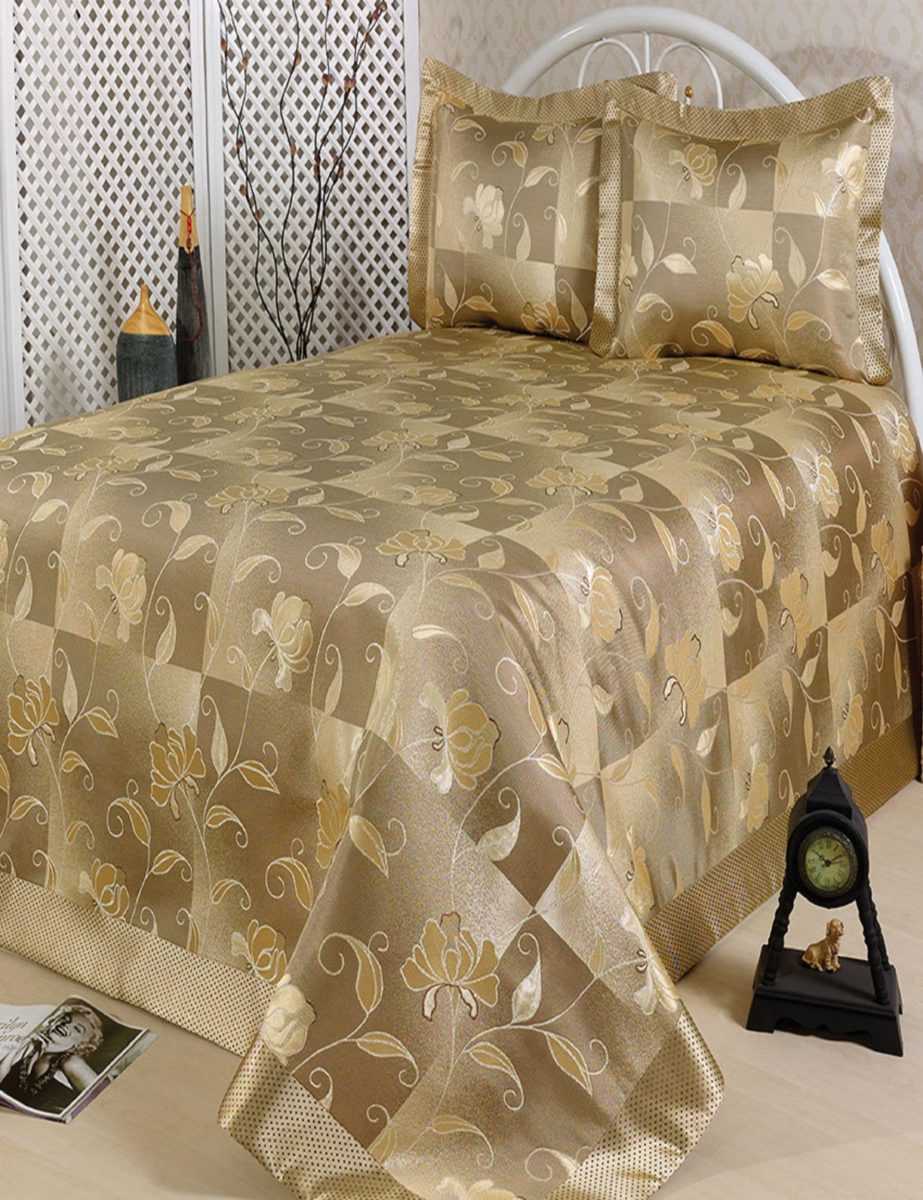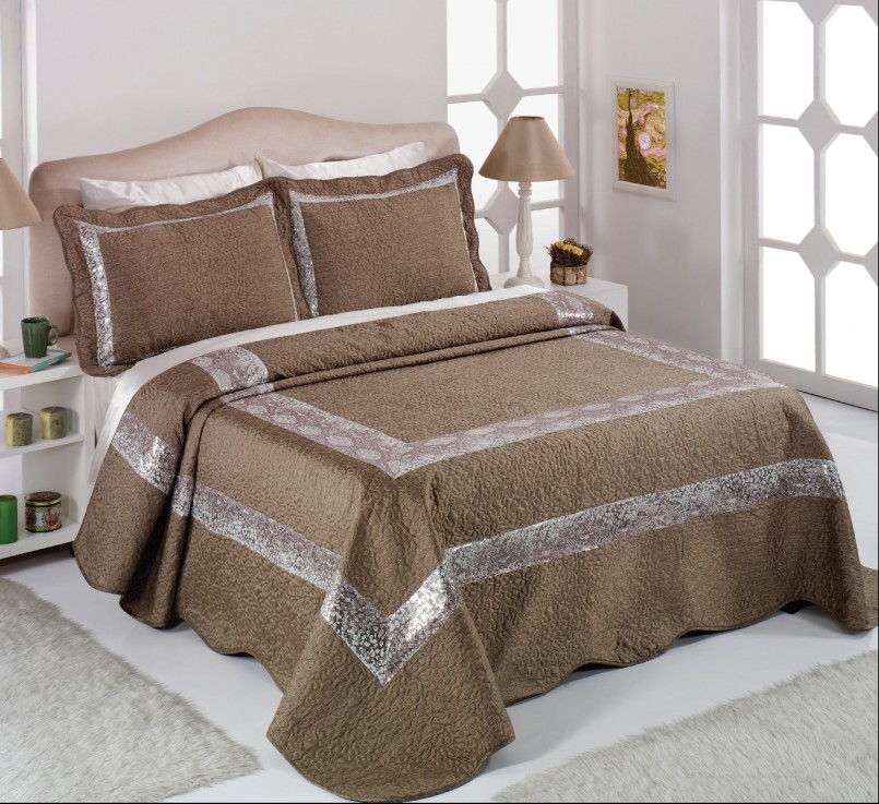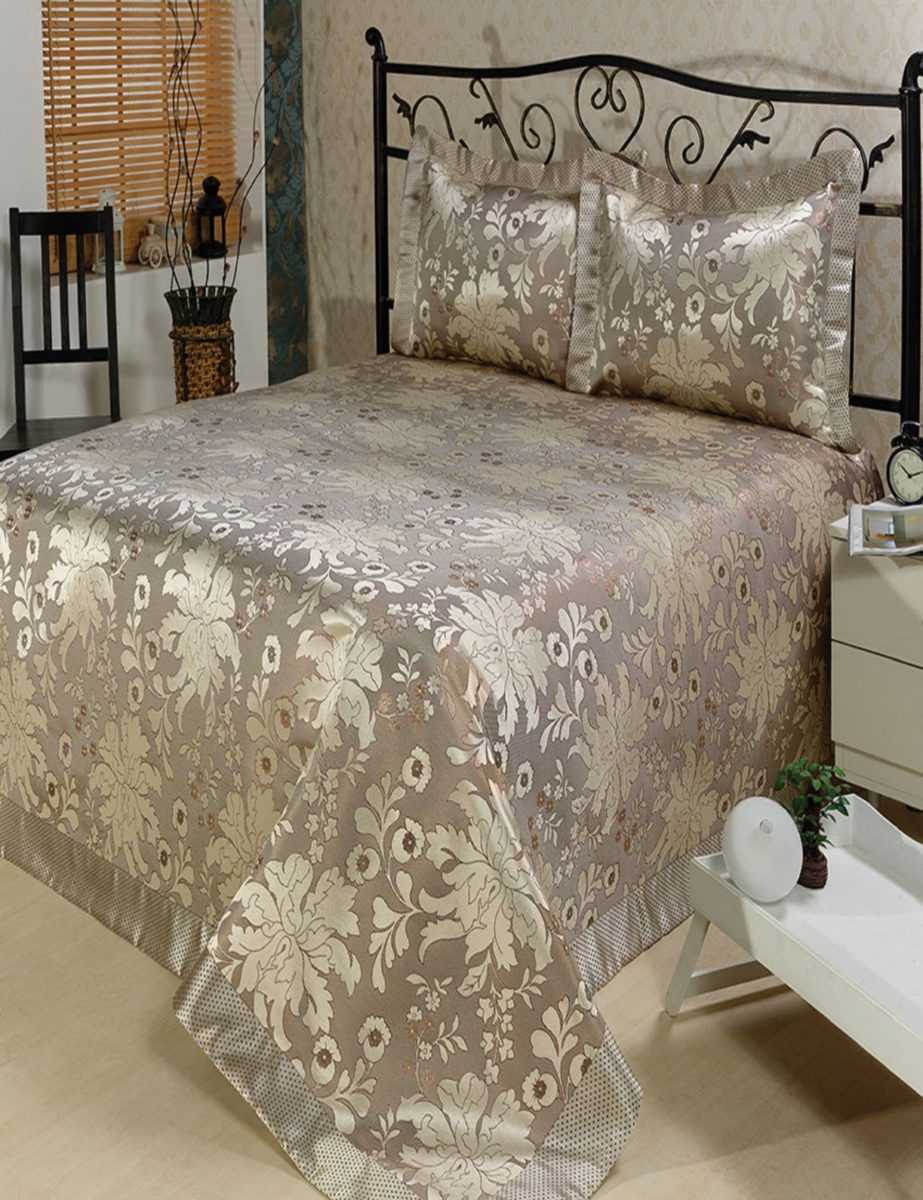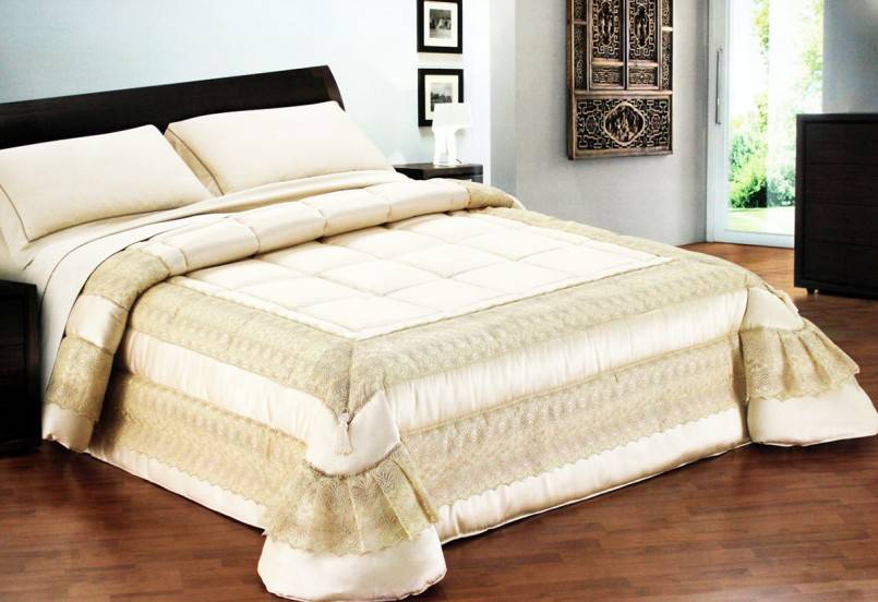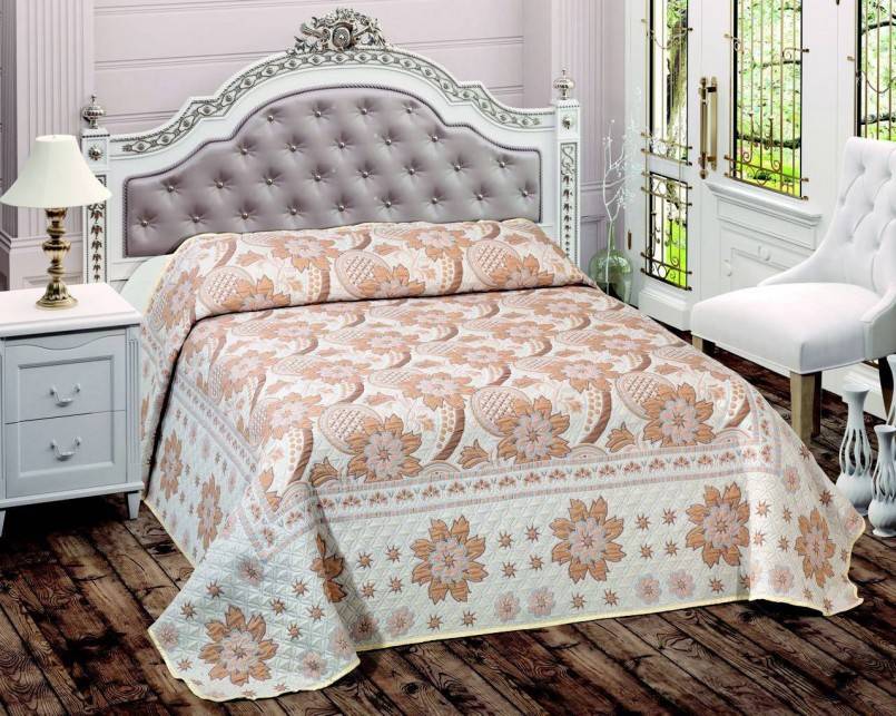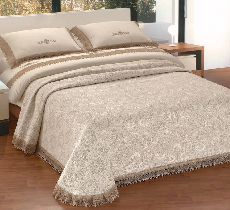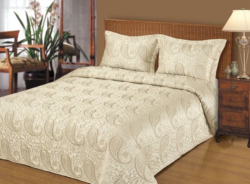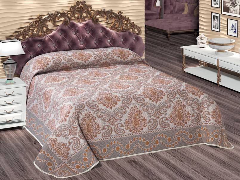- покрывало обязательно должно подходить по размеру к кровати. Если оно будет даже на пару сантиметров меньше, чем нужно, то смотреться будет очень куцо, каким бы красивым и дорогим не было. Но и большое для 2-х спал. кровати не лучше – если гобелен подогнуть, идеально ровной поверхности не получится, вид будет неряшливый. Длина покрывала должна быть такой, чтобы оно полностью скрывало постельное белье 220*240;