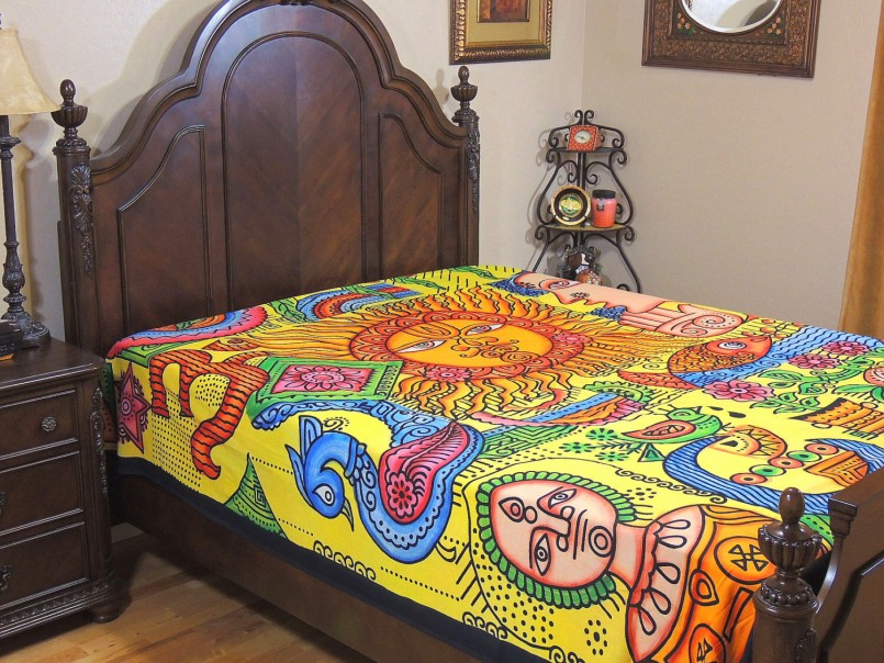 Использовать гобеленовые покрывала на кровать можно и в спальне, и в гостиной, и в детской.