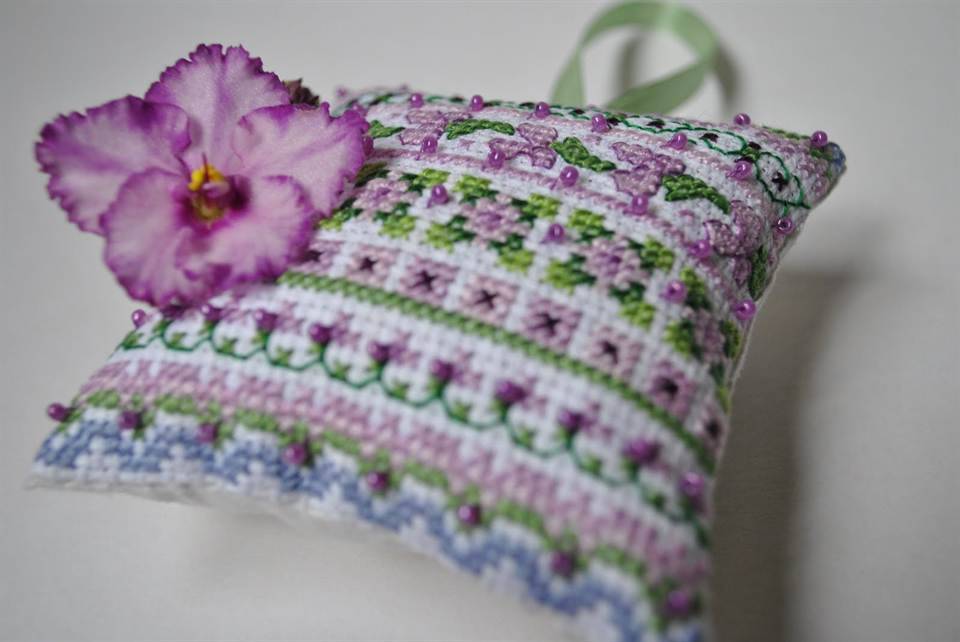 | Вышивка мешочка из серии ” Мамины сокровища” крестиком, с оформлением в технике хардангер. |