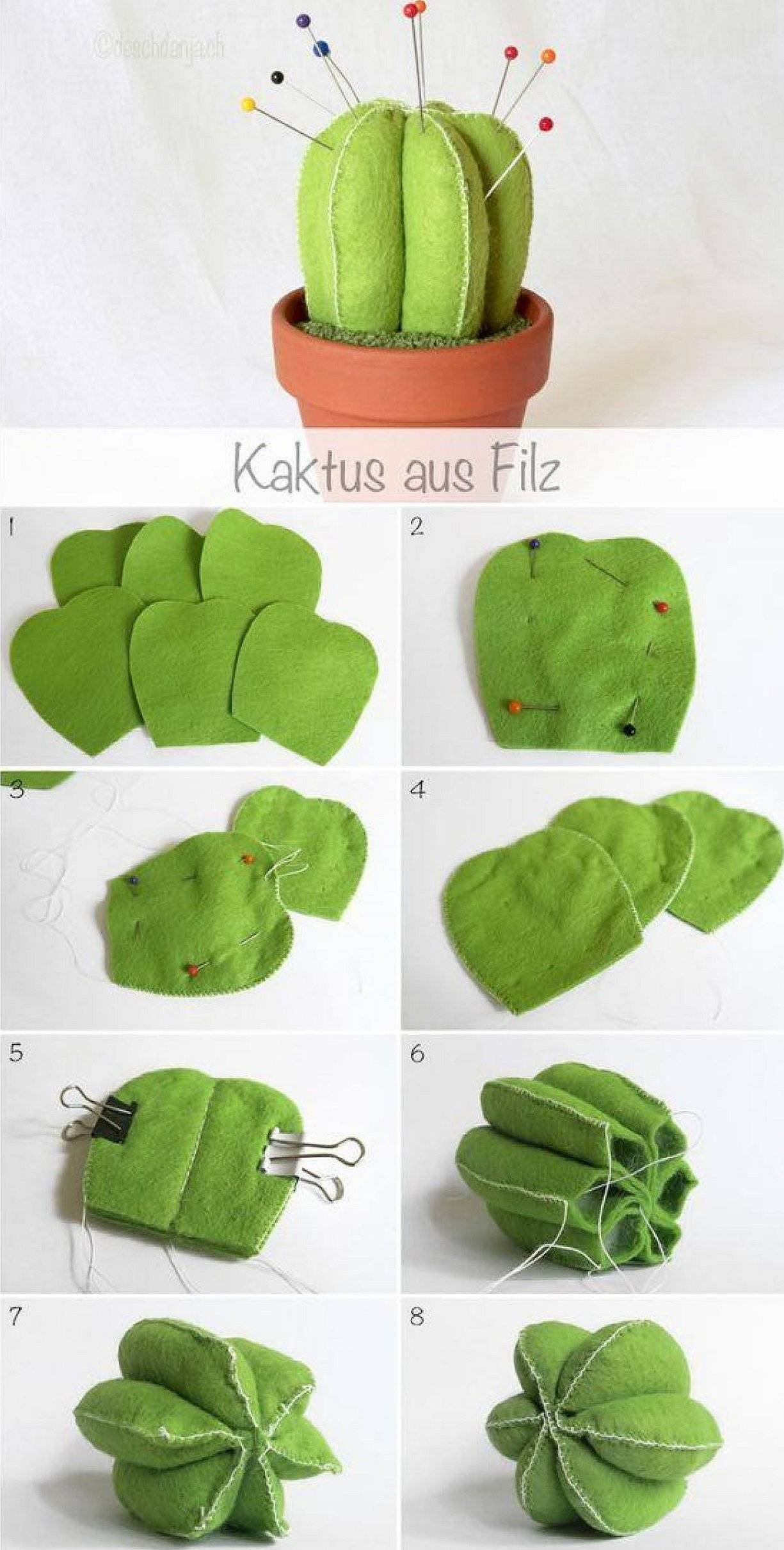 Игольница в виде манекена своими руками с выкройками — более сложный вариант для оформления рабочего места. Из фетра легко сделать кактус.
