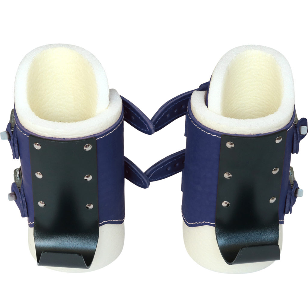 Имеют двойные пряжки и двойное защелкиванием. Максимальный вес, который они способны выдержать достигает 120 кг. Обхват лодыжки достигает в 33 см. Толщина подкладки достигает 15 мм.
