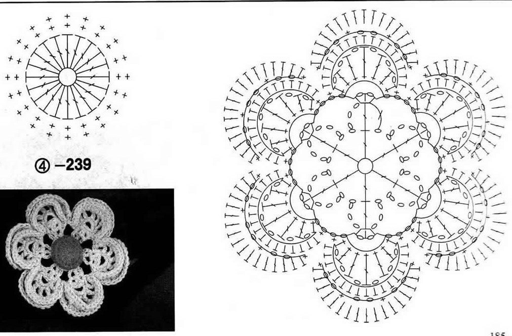 Мотивы цветов бывают разные от простых до сложных, схемы, можно найти в большом количестве в журналах, книгах и конечно в сети интернет. Также много авторских цветов, которые в своем творчестве родились у вязальщиц. Удобно вязать цветочные мотивы по схемам, но есть и отрицательные стороны, иногда схемы не очень понятны, не указаны некоторые соединения, нет начала вязания, это создает трудности, особенно начинающим вязальщицам