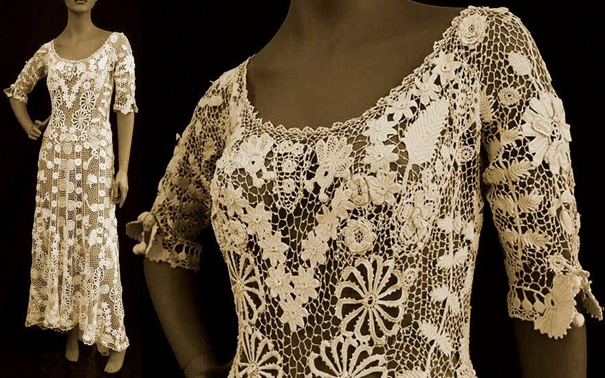 Из кружева делались платья, воротнички, шали и даже пальто. Однако с момента возникновения машинной вышивки, такой вид кружева пришел в упадок. Как бы ни были ценны и красивы вещи из ирландского кружева – механические кружева стоили в разы дешевле.