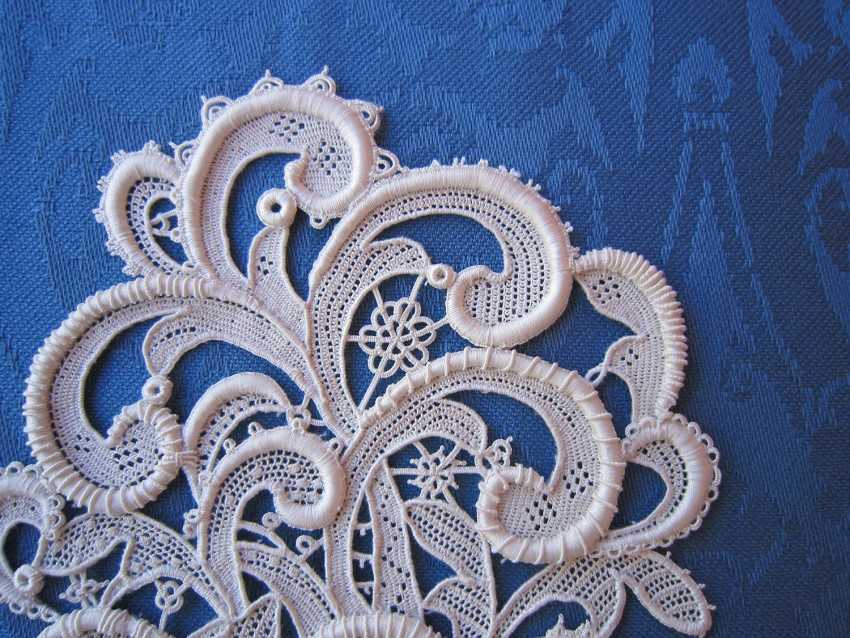 Великолепно смотрятся в кружеве шнуры и завитки, цветочки и лепесточки, соединяющиеся сеткой. На одежде несколько лучшем свете выглядят завитки. Рукодельницы применяют оригинальный завитый тысячелистник.