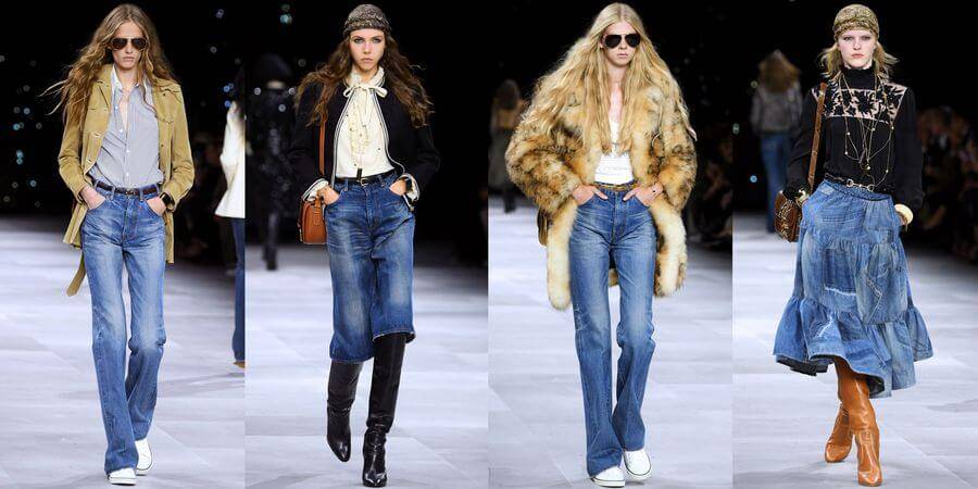- Boot — расширяющиеся или клёш (именно поэтому не стоит называть так любой крой). Были популярны в 70-е, затем в нулевые, и вот, снова вернулись в моду во второй половине 10-х. Они зрительно удлиняют фигуру и отлично смотрятся с сапогами в ковбойском стиле.