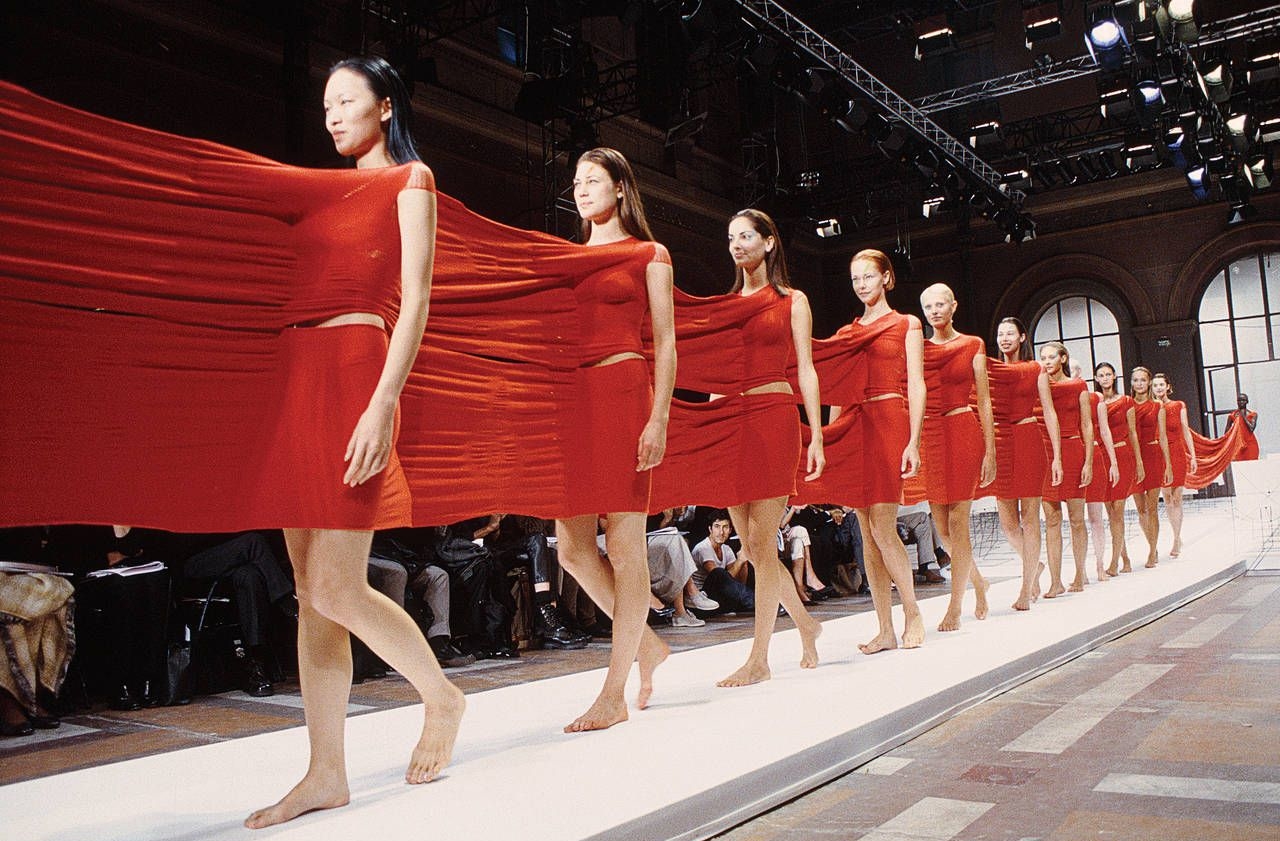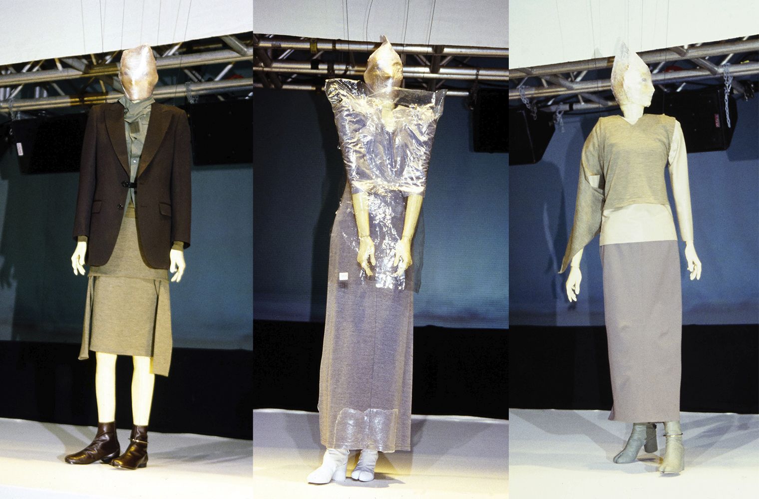Весеннюю коллекцию представили мужчины в лабораторных халатах, выносившие вещи вместе с вешалками. В следующем сезоне людей заменили деревянными куклами-марионетками в человеческий рост, которые были разработаны стилистом Джейн Хау. Манекены были подвешены на тонкие тросы таким образом, что можно было управлять движениями рук и ног, создавая ощущение настоящего дефиле. Мероприятие, проходившее поздно вечером в Большой арке Дефанс, также оказалось примечательным благодаря ярким образам, которые были завернуты прозрачной пленкой и украшены фирменными расширяющимися книзу рукавами с отворотом.