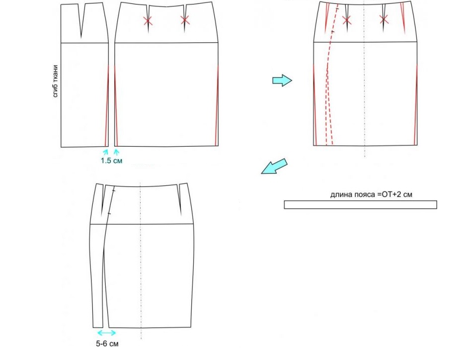 Простая выкройка юбки-карандаш. Пошив стандартный, описан выше по тексту.