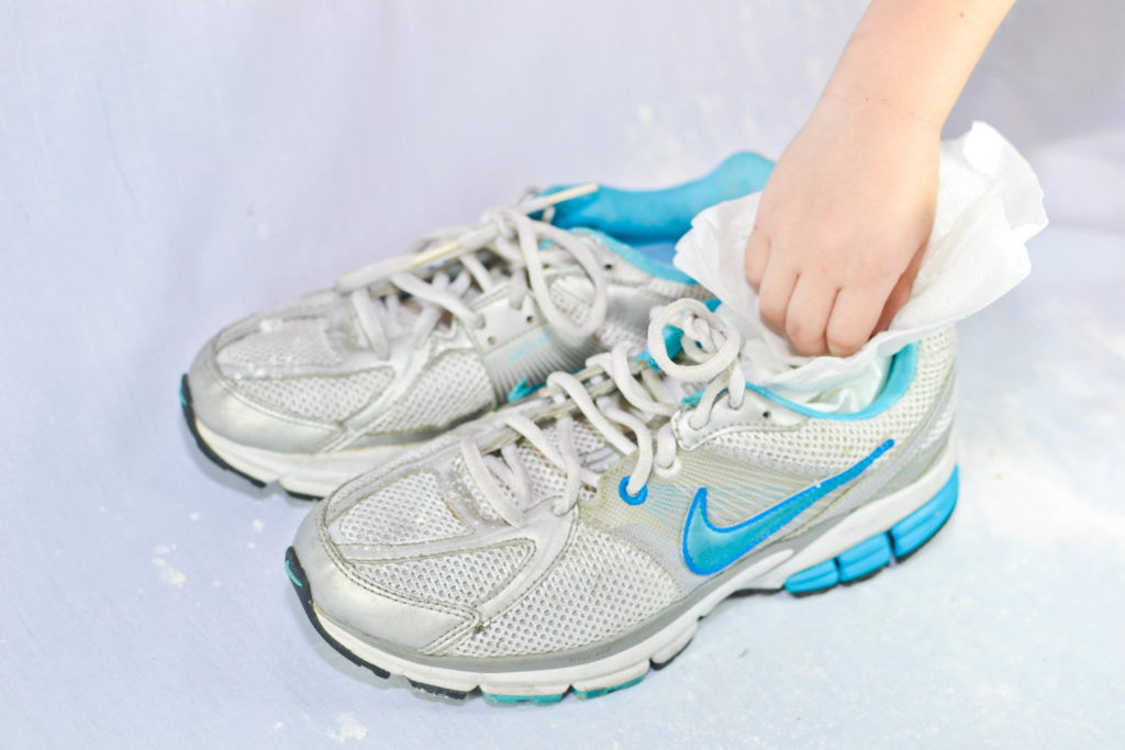 Но сначала кроссовки очищают от поверхностных загрязнений влажной хлопковой тканью или резиновой щеткой