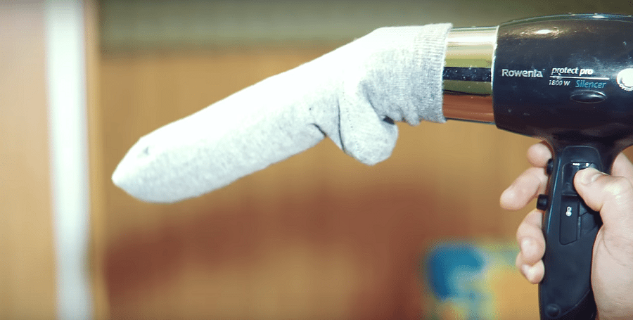 Чтобы высушить одежду в домашних условиях, не повредить структуру волокна, используют горячий воздух, который идет от фена.