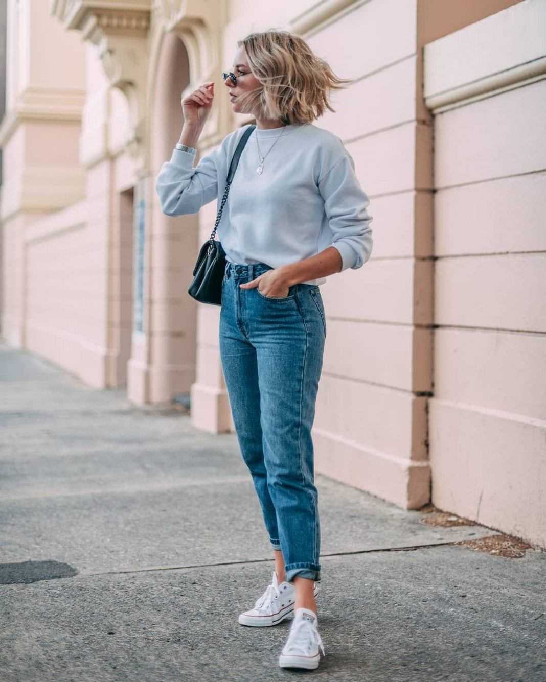 Если вы ведете активный образ жизни, мешковатые джинсы будут отлично смотреться с кроссовками, джемпером с широкими рукавами и мини-сумкой.