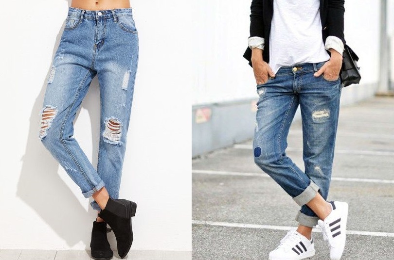 - Бойфренды. Нет, это не джинсы вашего парня. Это один из самых модных трендов — женские джинсы, имеющие мужской покрой. Они свободные и слегка мешковатые. Смотрятся так, будто вы их одолжили у своего молодого человека. Они идеально вписываются в стиль casual. Поэтому небрежность в образе будет в тему.