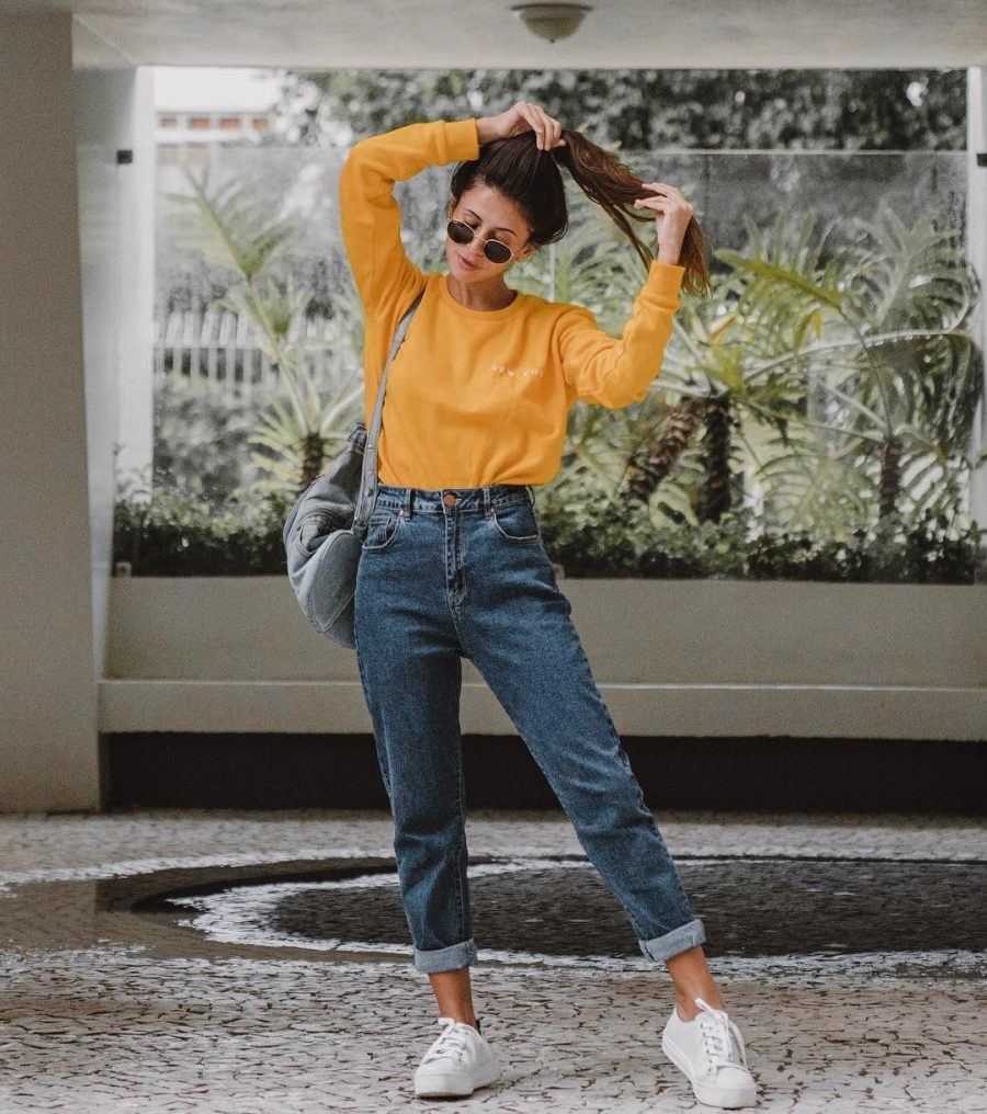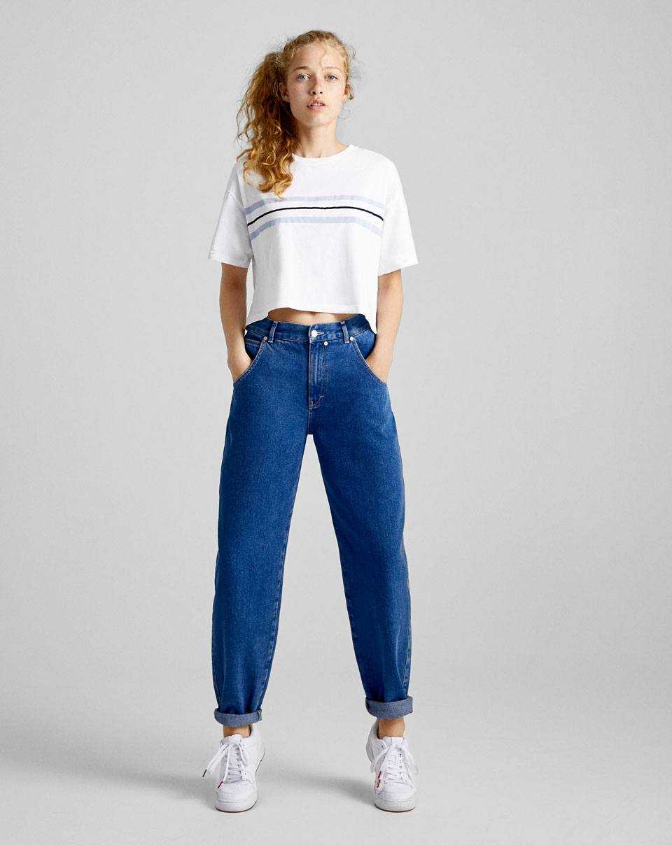 - Мамсы, или «мамины» джинсы. Стиль 90-х теперь в моде, поэтому вещи той эпохи будут актуальны. Особенности такого силуэта — прямой крой и высокая посадка. Такое необычное название джинсы получили благодаря домохозяйкам. У них не было времени следить за собой, и они носили растянутые вещи. Американские сериалы сделали их популярными. «Мамины» джинсы прекрасно вписываются в стиль casual.