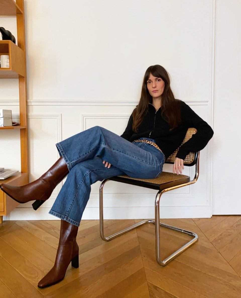 Весной 2023 года попробуйте сочетание — черная водолазка (или пуловер любой формы и цвета) с джинсовой курткой и джинсами. Пара модных ботинок-козаков и сумка через плечо дополнят образ. Результат — одна из тех «модных униформ», которые выручат в тысячах разных случаев!