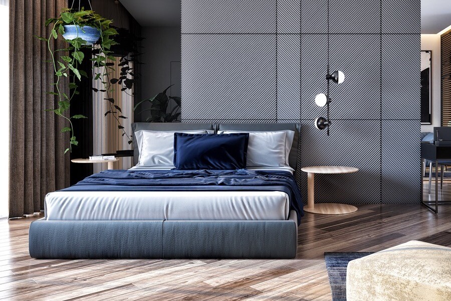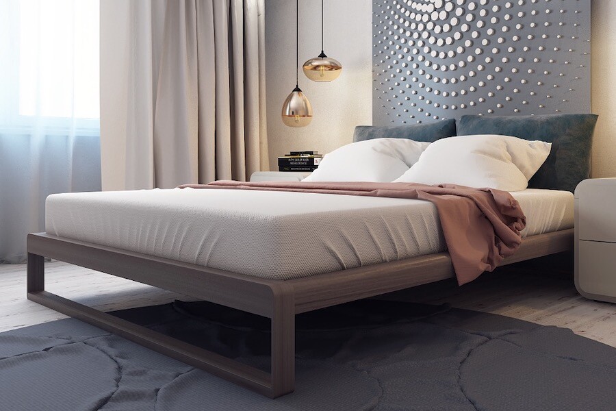Благодаря своему дизайну такой внешний вид кровати выглядит довольно строгим и аскетичным, поэтому он идеально подходит для современного интерьера спальни или минимализма. Чехол может быть однотонным или украшенным орнаментом.