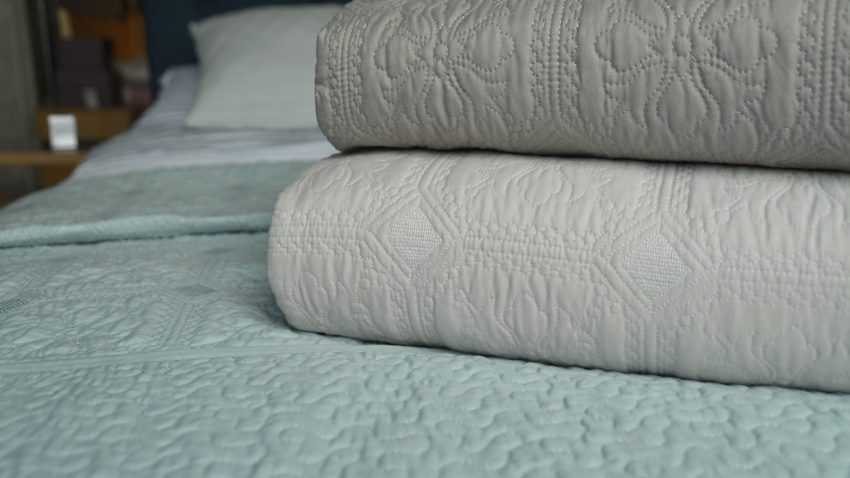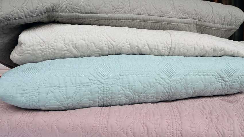 Пожалуй, это идеальный материал для изготовления покрывала. Полностью натуральное белье быстро теряет цвет и может дать усадку после нескольких стирок. Поэтому в натуральное волокно добавляют искусственные нити, и такая ткань долго сохраняет форму и цвет.