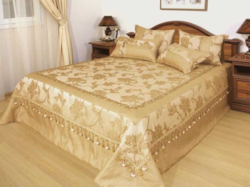 Определившись с тканью, вы можете купить готовое изделие в магазине или сшить покрывало для кровати в спальню своими руками. Для изготовления покрывала часто используются следующие ткани: