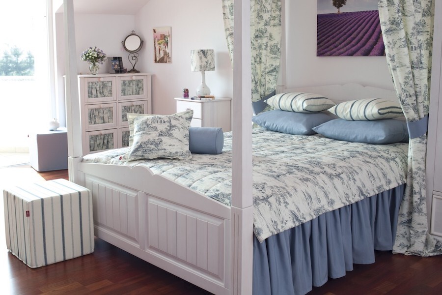 Чтобы спальня выглядела оригинально, дизайнеры рекомендуют украшать кровать декоративными элементами, сочетающимися по стилю и цвету с остальным текстилем. Для этого подойдут: «юбочки», пледы, подушки разной формы, пледы, вязаные салфетки, вышитые полотна, мягкие игрушки.