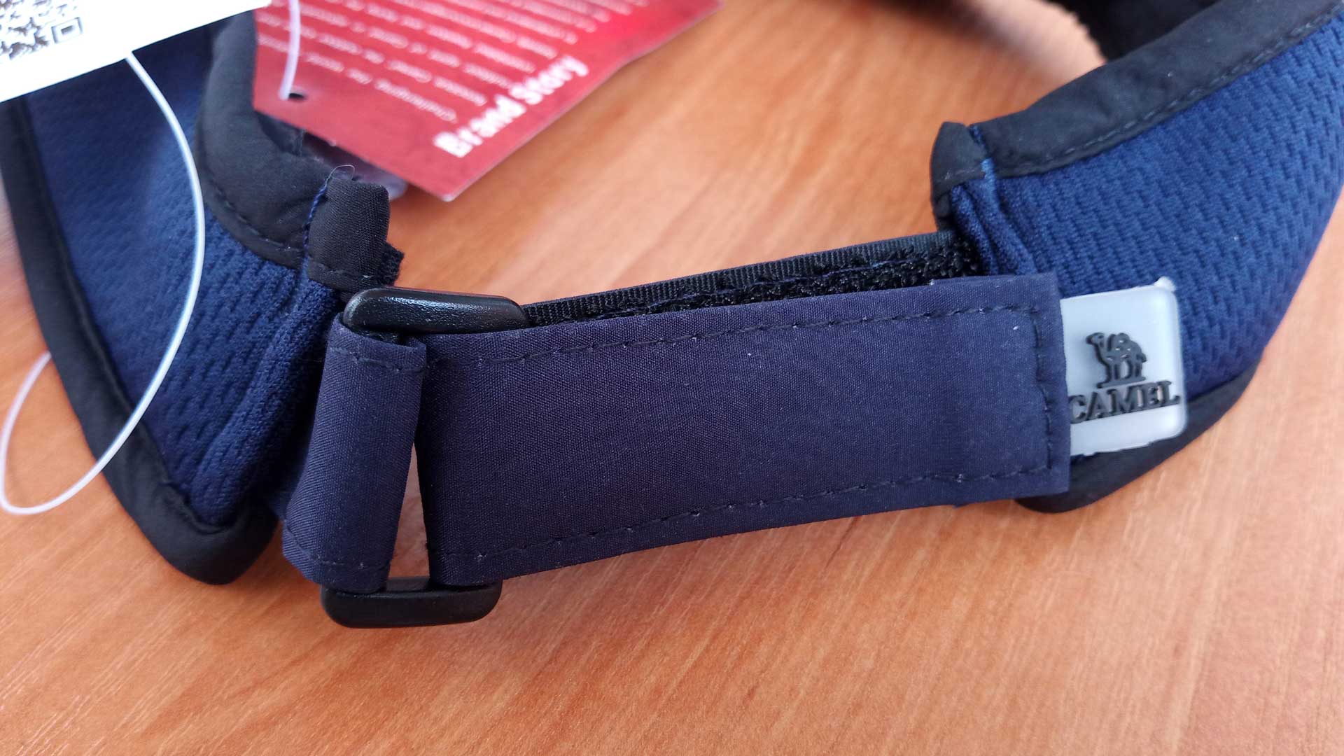 Кепка-козырек Camel выполнен из разных материалов. Козырек и фронтальная часть покрыта тканью похожей полиэстер, она довольно мягкая. Боковые стороны снаружи и внутри, а также фронтальная сторона внутри сделаны из сетчатого дышащего материала. Внутри по всему периметру вшита плотная тканевая вставка, для предотвращения затекания пота на лицо.
