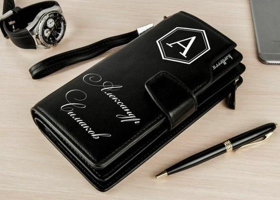 Ещё один хороший вариант – именной кошелёк. Пусть на нём будет выгравировано имя владельца, написанное каким-нибудь красивым шрифтом. Аббревиатура из фамилии, имени также не помешает. Даже если кошелёк потеряется, нашедший будет хотя бы примерно знать, кому его вернуть. К тому же такой аксессуар смотрится стильно.