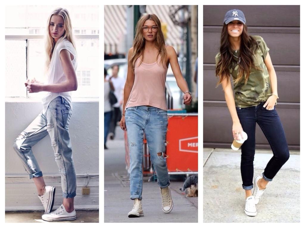 Классический фасон сочетается и со спортивной обувью. Благодаря этому смело можно носить джинсовые брюки с кроссовками или кедами как с низким, так и с высоким верхом.