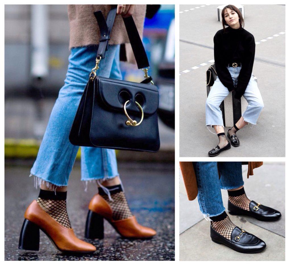 В сочетании с грубыми мужскими полусапогами получится стиль гранж. Для создания делового и casual стиля, как на фото с модных показов, подойдут лодочки с острым носом.