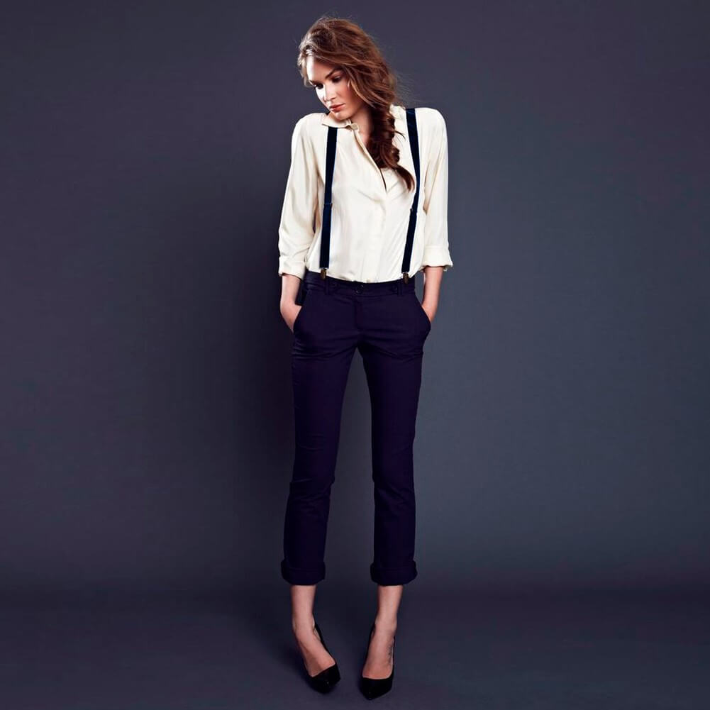 Даже классический «офисный» вариант можно оживить стильными подтяжками, галстуком или аксессуарами.