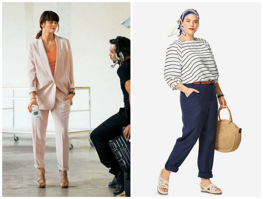 Тонкие и легкие материалы подходят для создания плавных линий и избегания излишнего объема. Летние брюки из хлопка или льна отлично подойдут для утонченного образа. Выбирайте модели с простым кроем и минимум декора, чтобы избежать эффекта «набата» на узких бедрах.