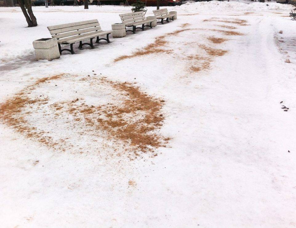 Воздействие химических реагентов, которые рассыпают зимой на дороги и тротуары. Содержащаяся в них соль, проникает в поры материала, а при сушке кожа выталкивает ее изнутри наверх в виде пятен и разводов.