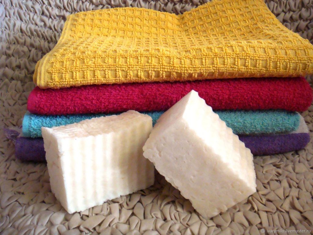 Две трети стакана стирального порошка смешивают с тремя столовыми ложками отбеливателя, рафинированного растительного масла и уксусной эссенции. Все это разводят в 15 литрах кипятка. Грязные полотенца оставляют отмокать в растворе на ночь, утром отжимают и стирают в стиральной машинке.