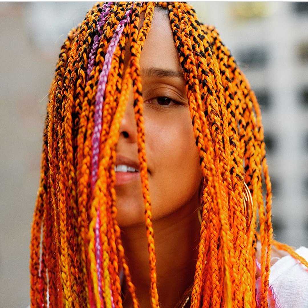 Классические африканские косы могут быть цветными. Для создания разноцветных вариантов используются специальные дорогостоящие краски, не выцветающие на солнце и не вызывающие аллергических реакций.